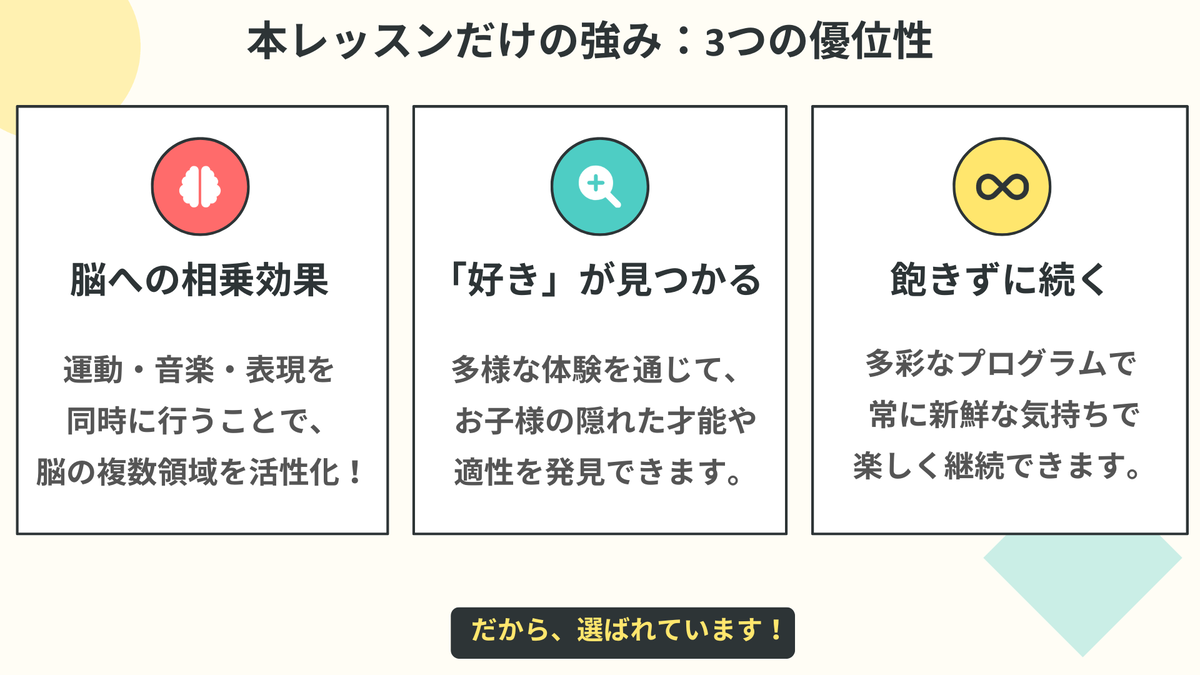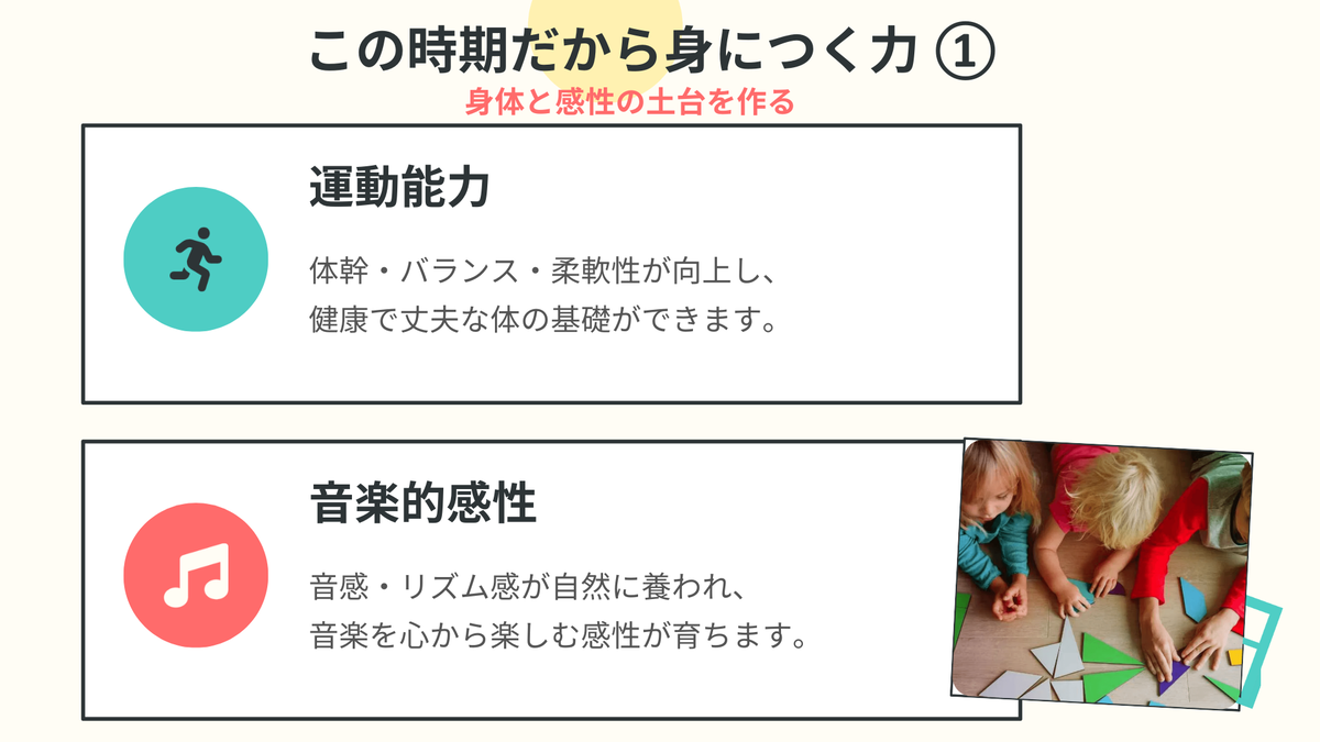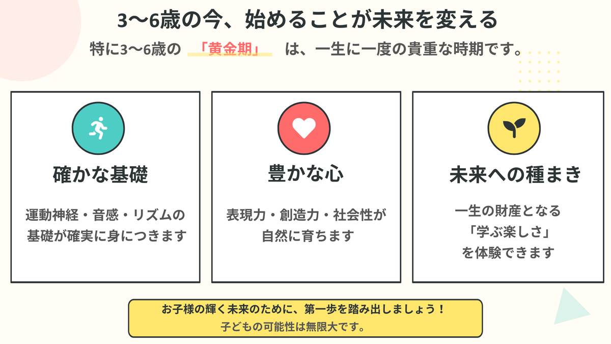 このレッスンは、3〜6歳の「土台形成期」に特化しています。
