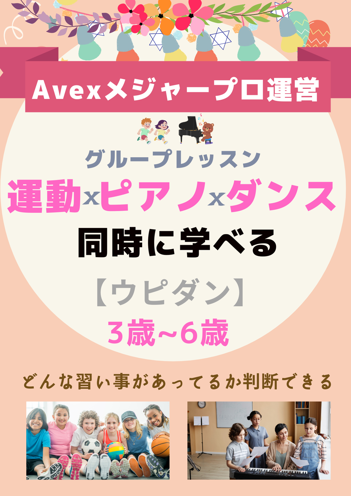 ウピダンは、3〜6歳の子どもが「その先の習い事」に無理なく進むための土台を育てるレッスンです。